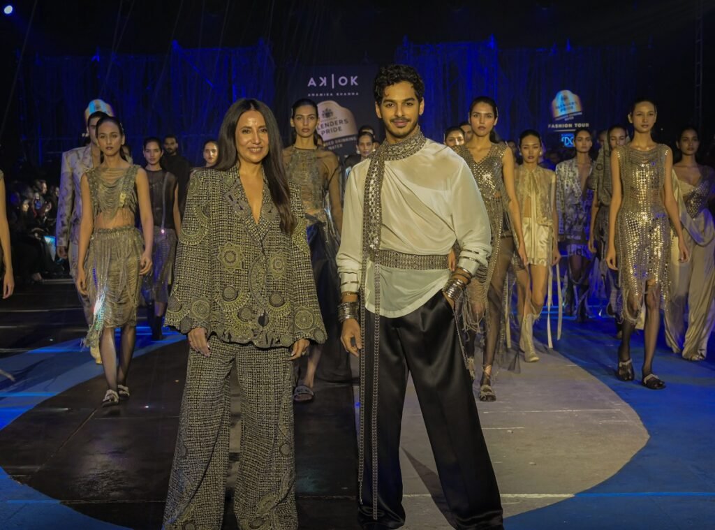 Against the glowing silhouette of the Howrah Bridge, the Blenders Pride Fashion Tour closed its 2025 edition with a craft story that blended emotion, heritage and market ambition. On a barge anchored in the Hooghly River, designer Anamika Khanna’s AK|OK collection unfolded like a tribute to generations of artisans, featuring deconstructed zardozi, chikankari and mirror-work reimagined through futuristic cuts and metallic finishes. Actor Ishaan Khatter, arriving dramatically by speedboat, became the face of a message that craftsmanship can leap beyond tradition into a global conversation.