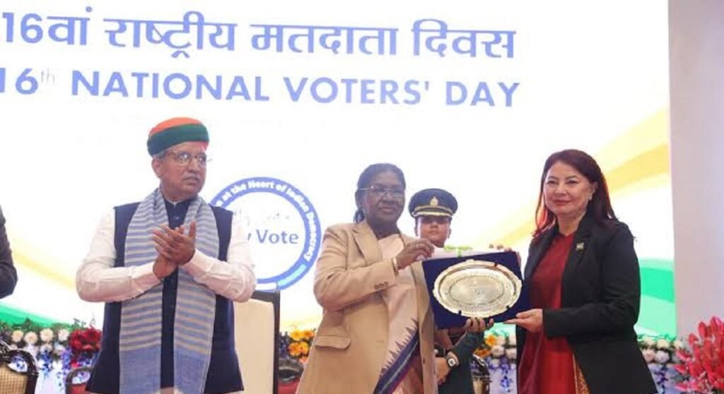 East Khasi Hills District has won the Best Election District Award on election management and logistics. The award was presented by the President of India Droupadi Murmu to Deputy Commissioner of East Khasi Hills RM Kurbah during the National Voters’ Day celebration held at Manekshaw Centre, Delhi Cantonment, New Delhi on Sunday.