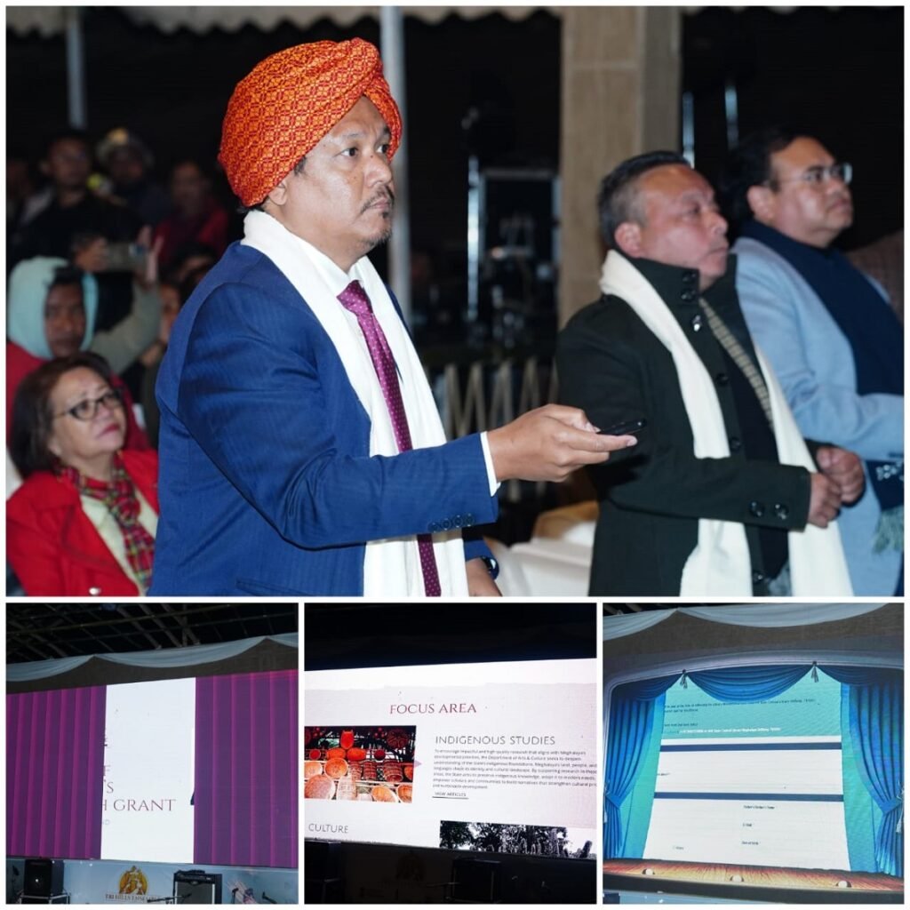 The evening included the Recognition and Award Ceremony honouring individuals and groups under the Meghalaya Culture and Cuisine Awards and the Meghalaya Arts and Heritage Awards, including promoters of the Khasi language, innovators in indigenous cuisine, community library initiatives, folklore specialists, and performers and craftsmen from across the State. Significant releases included a preview of the film, Crafting Technique of the Saitar under the Chief Minister’s Research Grant, research articles on the CMRG portal, online library membership registration, the Rasong National Tribal Festival Report, and the CMRG Report. Book launches included works by Ana Notsu translated into Biate by Anthony Durpui and Ringmunfeli Nampui, along with contributions by Silbi Passah and Khrawbok Shadap.