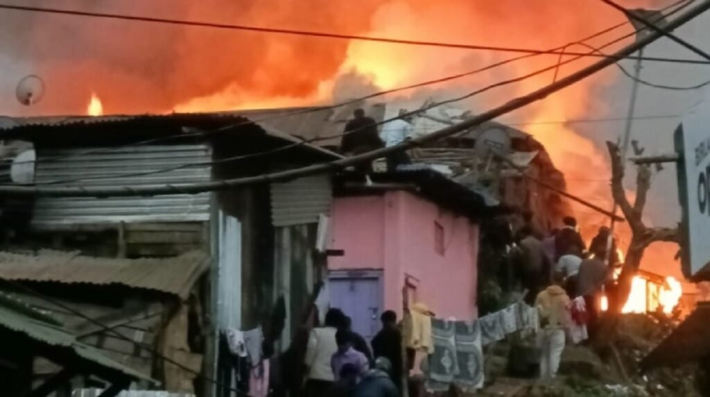 A major fire broke out on Friday evening, gutting temporary tenement houses at Goenka Compound, Mawlonghat, which are owned by three individuals and shelter around 40 tenants. The Fire and Emergency Services received information about the blaze at approximately 4:30 PM. Six fire tenders were immediately dispatched to the scene to bring the fire under control. Fire personnel were still working to fully extinguish the flames at the time of reporting.