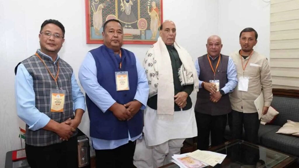 A delegation of BJP leaders led by Cabinet Minister Sanbor Shullai and State BJP President Rikman G. Momin called on the Union Defence Minister Rajnath Singh in New Delhi to seek an early resolution to the long-pending issue of relocation of the Dalit Sikh community from Them Iew Mawlong to Cantonment area.