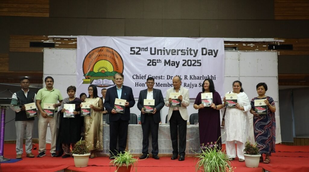 The North-Eastern Hill University (NEHU), one of the premier institutions in the North- Eastern region of India, celebrated its 52 University Day on 26 May 2025 with great fervour and renewed optimism for the future. The Chief Guest of the event was Dr. W. R. Kharlukhi, Member of the Rajya Sabha and a proud alumnus of NEHU. The celebrations began with the release of the NEHU anthem titled “Rise Up and Build” by the Chief Guest. Composed by Dr. Uttam Sharma, with lyrics penned by Prof. Shobhan N. Lamare, the anthem beautifully encapsulates the spirit and vision of the University. In his address, Prof. Lamare elaborated on the inspiration behind the anthem, emphasizing the significance of the University’s motto “Rise Up and Build” and the symbolism of the rising sun-representing light, truth, and strength. He noted how the anthem draws from the natural beauty and stories of the land, rivers, and waterfalls, ultimately aiming to inspire the youth to take charge and serve the nation. The event witnessed enthusiastic participation from members of the teaching, non- teaching, and student communities, underscoring the collective spirit that drives the University forward.