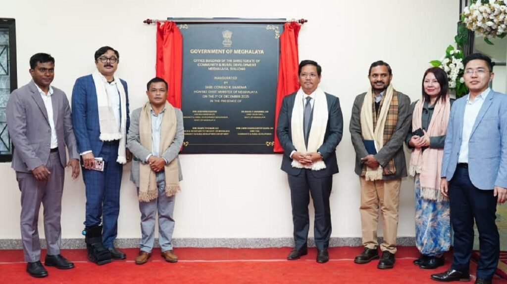 Chief Minister, Conrad K Sangma, toady, inaugurated the office budding of the Directorate of Community & Rural Development at Lower Lachumiere, Shillong, in the presence of Minister, C&RD, Sosthenes Sohtun, Chief Secretary, Dr Shakil P. Ahammed, Principal Secretary, C&RD, Sampath Kumar and Director, C&RD, S C Sadhu. Delivering the inaugural address, Chief Minister, Conrad K Sangma, said that the Community & Rural Development department plays an important role in the economic and social upliftment of rural areas.