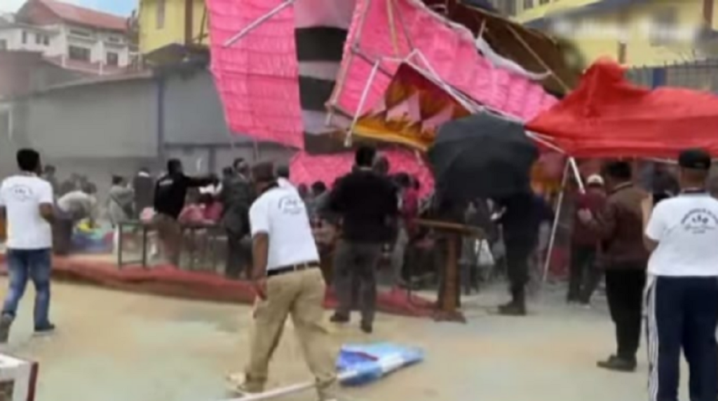 Fortunately, no injuries were reported, and attendees managed to move to safety as the structure came down.