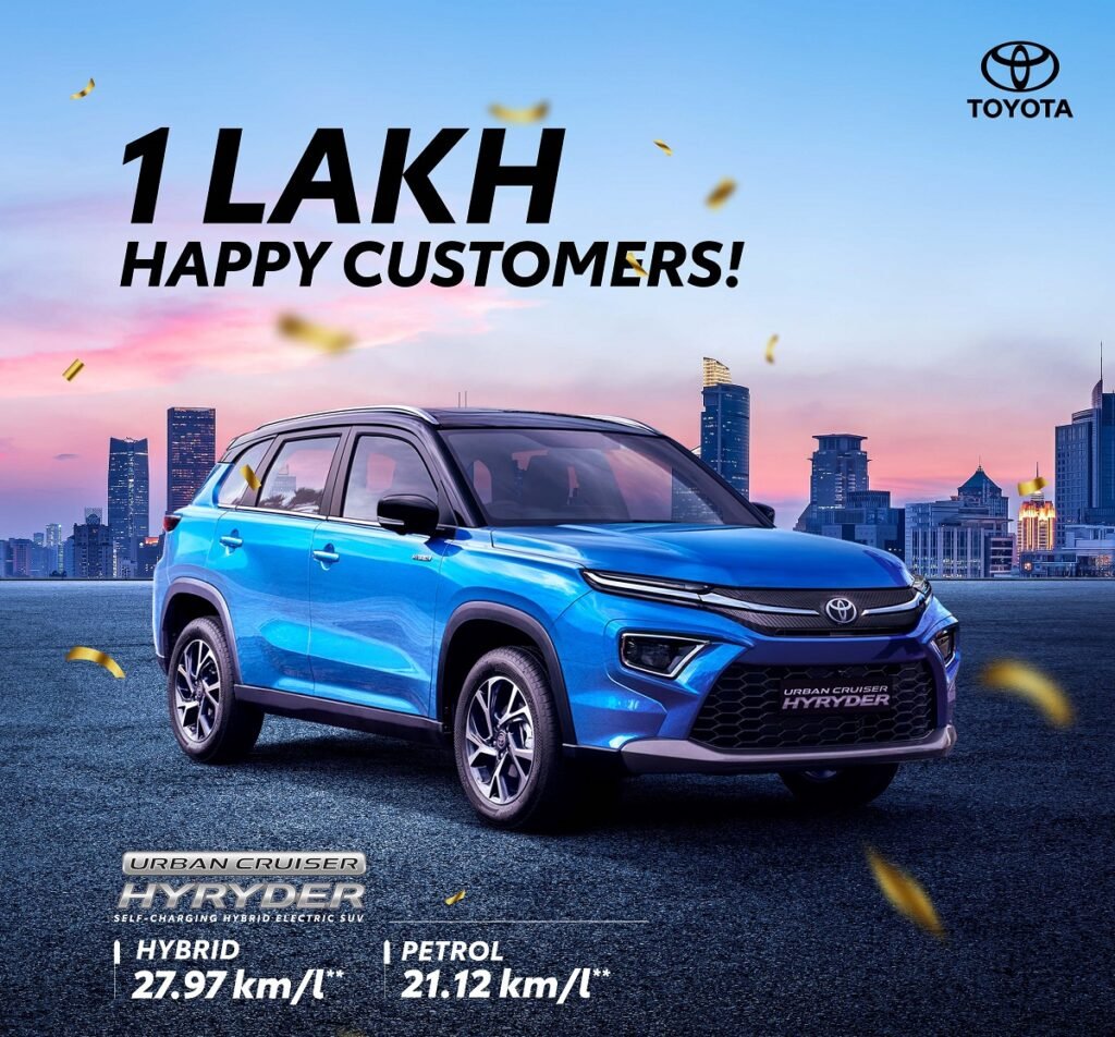 Toyota Kirloskar Motor (TKM) announced that its Urban Cruiser Hyryder has surpassed 1,00,000-unit sales in India since its launch in July 2022. This achievement highlights the rising consumer shift towards hybrid technology in the Indian automotive market.