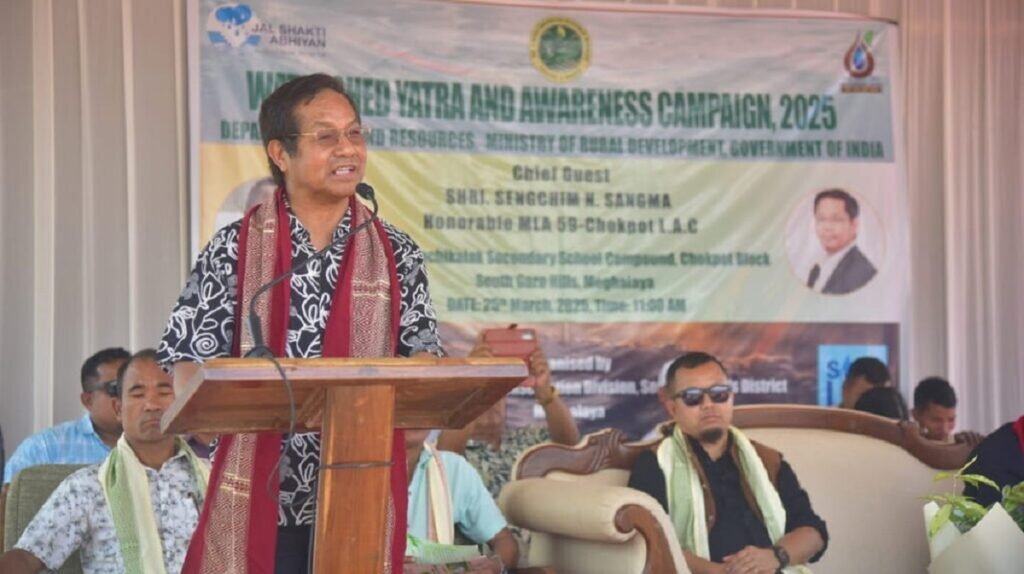 At Ganchikalak Secondary School, the Watershed Yatra—a national campaign supporting sustainable watershed management—engaged teachers and students in a number of hands-on environmental conservation activities. MLA of 59 Chokpot LAC, Sengchim N. Sangma, who is also the MDC of Chokpot GHADC, was the Chief Guest at the program’s opening ceremony. Former MDC Willy D. Shira, Wennison Ch. Marak, Shri Pittingson R. Marak (ADC, South Garo Hills), Chokpot Civil Sub-Division SDO, Dr. Merril N. Sangma (GHEPS President), K. C. Momin (GHEPS Advisor), John Oswin S. Momin (Divisional Soil & Water Conservation, Baghmara South Garo Hills), as well as Nokmas, Sordars, teachers, and students were present at the event.